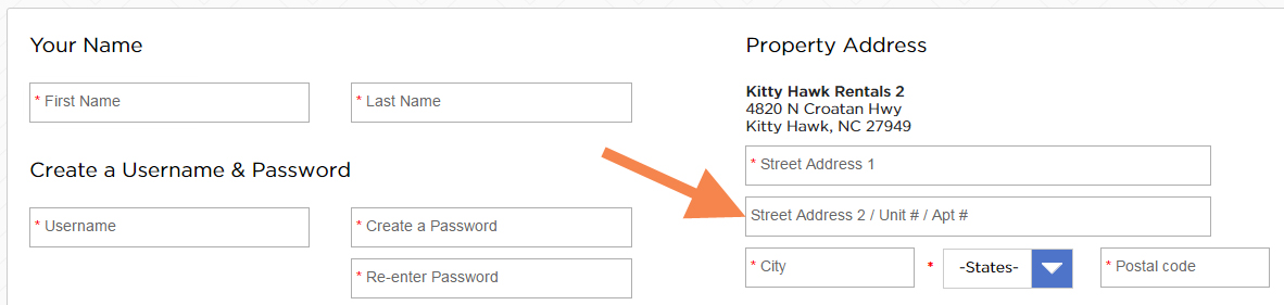 On the next page you will see the following form, please enter your Reservation/Booking Number into the Street Address 2 field.