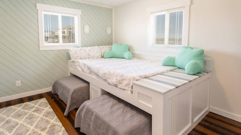 This swinging deck bed located on the mid-level covered deck of Driftwood in Nags Head offers a delightful way to unwind, providing the perfect spot for reading a book, taking an afternoon nap, or simply enjoying the ocean views and salty air breezes. Who wouldn't want to begin or end a fun day in this inviting space?