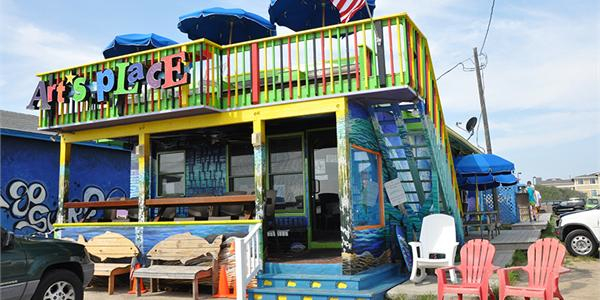 Art’s Place is a local’s favorite for a delicious cheeseburger or a filling breakfast in a laid back atmosphere. They are open for breakfast, lunch, and dinner and they offer live music throughout the week! Art’s place is located in Kitty Hawk around Milepost 3 on the beach road, and since the photo above they have added another level to their establishment providing even better views of the beach and ocean just across the road. The new 'Sway Bar' serves beverages and seafood from the steamer. Arts has more outdoor seating than indoor, so getting an indoor seat may be a challenge and with only a handful of seats including the bar inside, with zero elbow room, you will want to send only one person in to request a table while the rest of the party waits outside. They also have a fenced in backyard with picnic tables and a stage for live music. So if you’re in the mood for some good ol’ American cuisine – stop into Art’s place on your next OBX vacation!