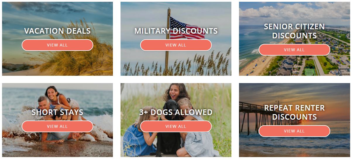Vacation deals are definitely a great way to choose your next family vacation rental. You'll save big by checking our weekly vacation deals - which is organized by arrival weekend. Many of our homes also offer military and senior citizen discounts. Another great way to be updated about vacation deals is to sign up for our email newsletter!
